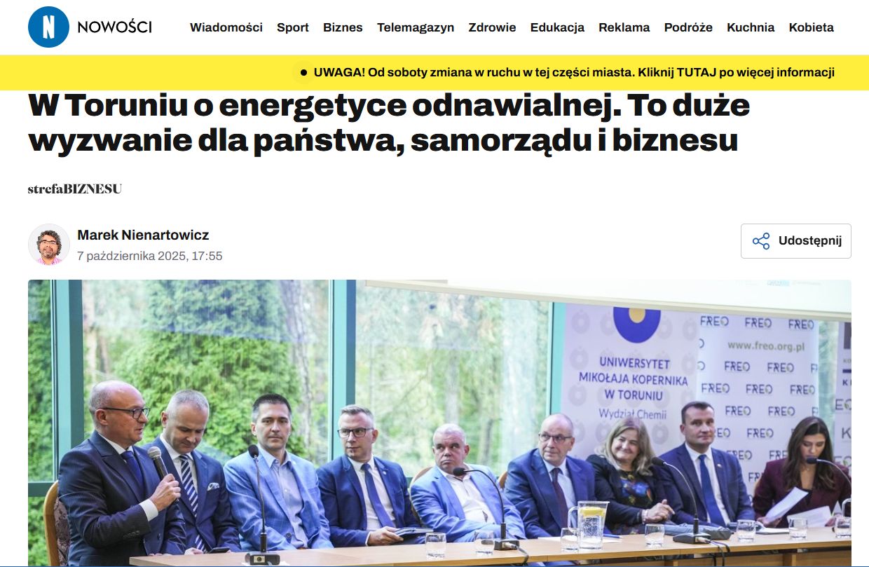 Kongres Rozwoju Energetyki Odnawialnej #KREO25 był szeroko relacjonowany w mediach. Zachęcamy do zapoznania się z materiałami: TVP3 Bydgoszcz, TV Toruń, Polskiego Radia PiK, Nowości. Dziennika Toruńskiego, Gazety Pomorskiej, Radia GRA, Radia ESKA, Meloradio Toruń, Miasta Toruń, gospodarka.kujawsko-pomorskie.pl, 4torun.pl, Energetyka.Plus, Energetyki Wodnej, Instytutu Energetyki, Pomorskiej Grupy Konsultingowej.  Przedstawicielom wymienionych redakcji i portali dziękujemy za obecność i profesjonalne relacje.